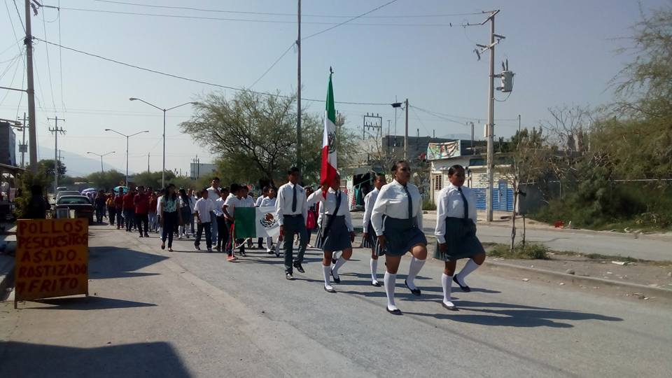 Escobedo, Nuevo León. Estudiantes de la escuela Preparatoria Lic. José Ponciano Arriaga Leija y de la Secundaria de reciente creación, con desfile conmemoran el 207 de Aniversario de la Independencia de México.