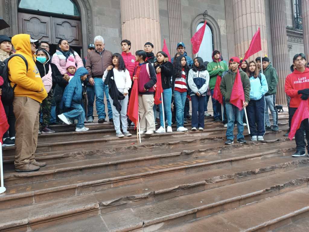 Monterrey, Nuevo León. Representantes de diversas colonias organizadas en el Movimiento Antorchista de Nuevo León y estudiantes entregaron el pliego de peticiones 2024 con el objetivo de que las demandas más sentidas de la población sean contempladas en el presupuesto estatal para el año entrante.