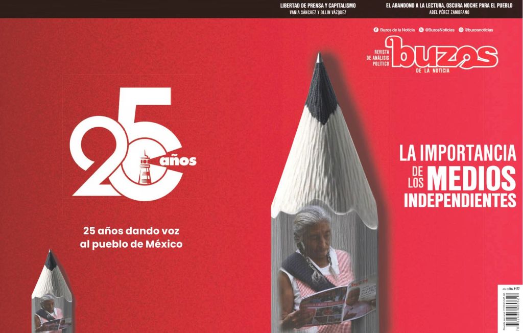 La Edición Especial del vigésimo quinto aniversario de buzos presenta como tema central un reportaje sobre la necesidad de los medios independientes en México. Otro texto acerca de la apropiación de los medios públicos por el gobierno de la “Cuarta Transformación”, además de artículos de opinión y columnas sobre la libertad de expresión, los medios de comunicación, etc.