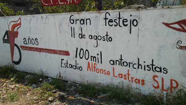 Con pintas invitan a regios a festejos del 45 aniversario de Antorcha.